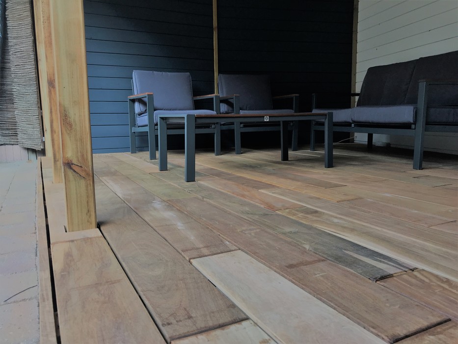 Mounting it with clips was easy, I personally found it even easier than laying a click laminate floor. An additional advantage of the clips is that you don't have to worry about the distance between the planks because the fixing clip takes care of this automatically. We are very happy with the result. The customer service of Hardwood Discount has also answered all our questions by phone perfectly and the decking boards were delivered the day after placing the order.