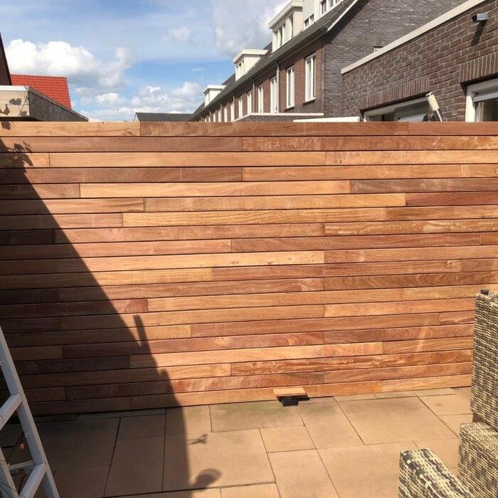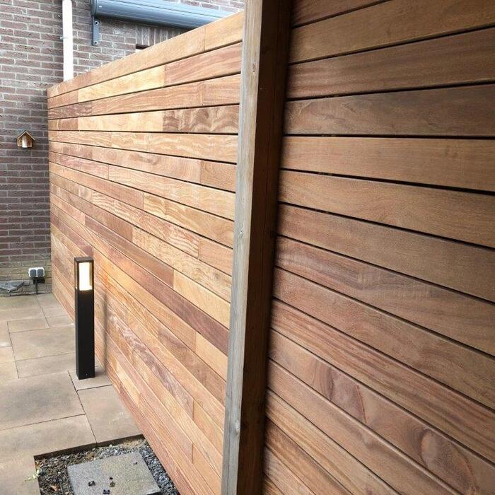"After years of looking at a standard timber-and-concrete fence, we wanted a fresh, modern look. The Refit solution was perfect for us as the original concrete posts could stay in place! We simply clad the old fence with premium 9 cm wide hardwood boards. Following the expert's tip, we painted the posts and backboards black first, which creates a stunning modern depth behind the slats. All necessary materials were included in the kit. Our garden has had a complete high-end makeover!"
